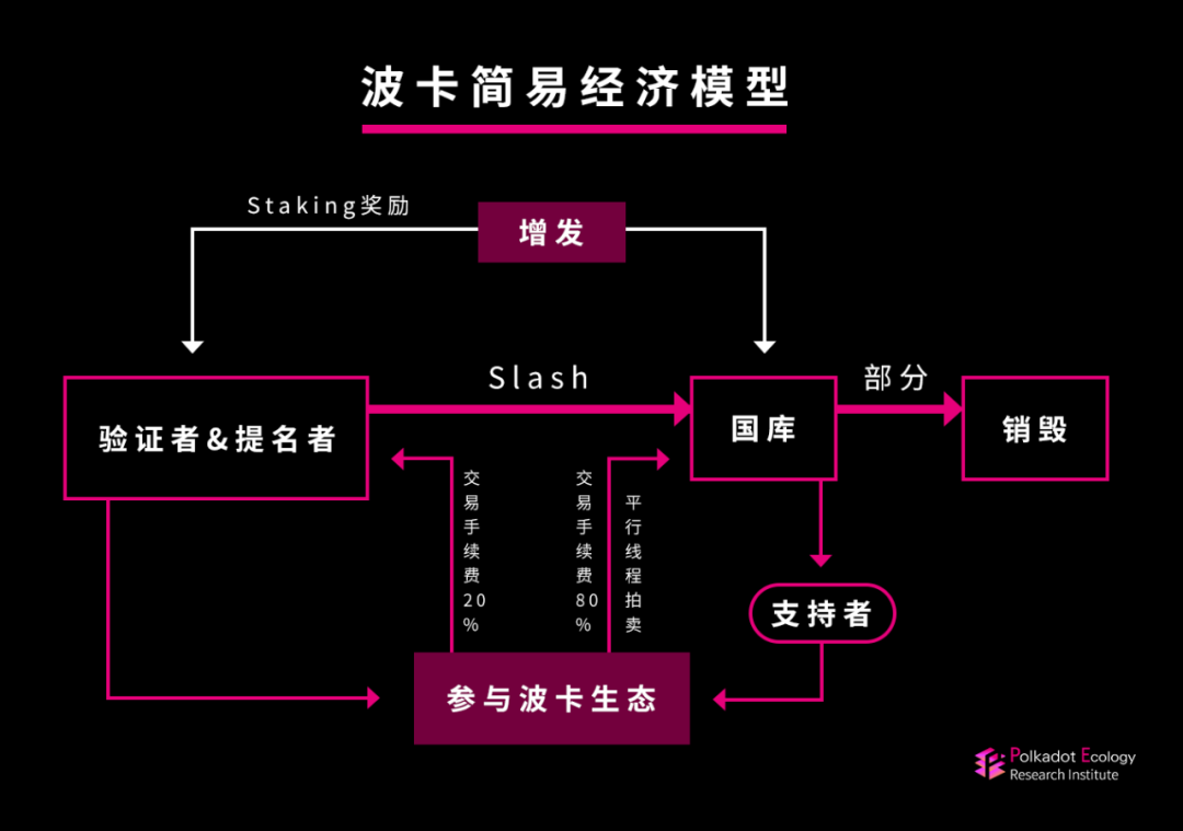 1、一部分增发的DOT用来奖励在Staking机制下的提名者和验证者,提名者可以提名其信任的验证候选人,当候选验证人成为正式验证人后,提名者可以共享验证者作为维护网络节点所带来的收益。